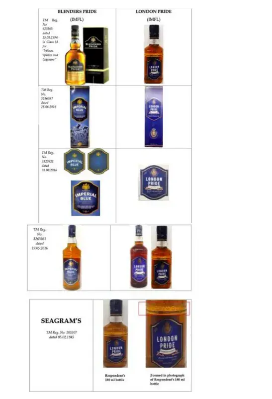 • Whether ‘London Pride’ infringes the registered trademarks/blends the goodwill of ‘Blenders Pride’ and ‘Imperial Blue’;